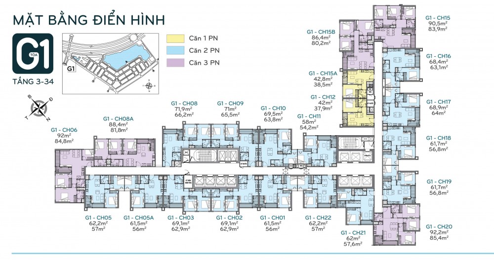 MẶT BẰNG TOÀ G1 VINHOMES GREEN BAY MỄ TRÌ